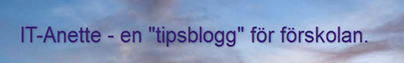 It-Anette – en “tipsblogg” för förskolan skrivs av en förskollärare som nu jobbar som it-utvecklare för förskolan. I bloggen läggs vikt på ikt och tipsar om många digitala verktyg och länkar, men ger också “vanliga” tips för förskolan. Anette har även en flik om appar som är väl värd att kolla in!